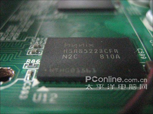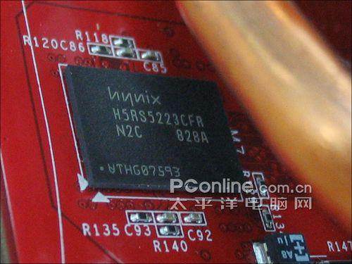 显卡显存颗粒来自韩国现代,8颗1.0ns显存颗粒,共同组成了512MB/256bit的显存规格。