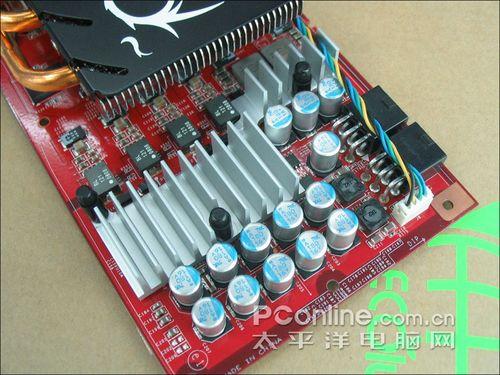 影驰 9800GTX+上将版显卡采用了加强型的4+2相供电设计,用料则选用的是通过QC检测的日本化工全固态电容、以及独立的MOS管散热器,这些都使得显卡的超频潜力得到了最大限度地提升。