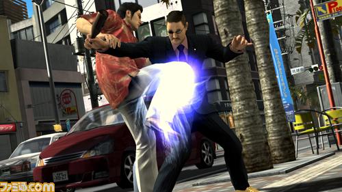 在前作便已经存在,华丽一击的极技能(ヒートアクション)在PS3的《如龙3》上无论画面还是表现力都得到大幅进化,在图片中我们可以看见主人公使用冲绳格斗技和双截棍打击敌人。