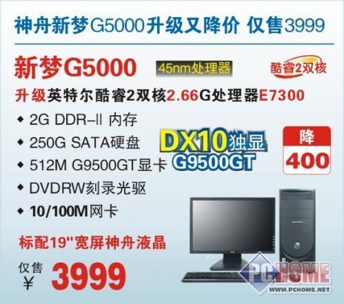E7300+2G内存PC仅3999 神舟新梦G5000