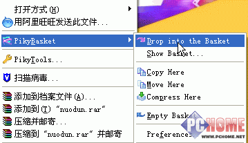 怎么样,是不是比原先方便许多?由于 Piky Basket 整合于资源管理器的右键菜单中,可以很方便的进行运用,需要的朋友下载一用吧!