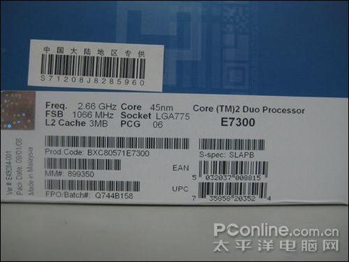 点评:Core 2 Duo E7300是Intel面向主流市场推出的45nm CPU,刚上市不久便杀出低价,目前散片、盒装的价钱分别是725元和800元,与之前热门中端CPU E7200价钱几乎一样。相同的价钱,更强的性能,E7300无疑已取代E7200成为中端热门的CPU。