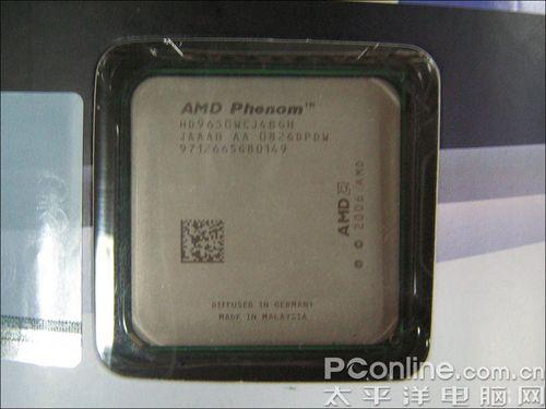 AMD Phenom X4 9650,从外观来看,以3核的AMD最常见的紫色为主调色彩。