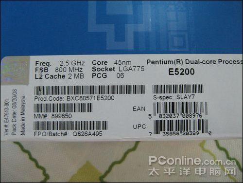 Intel Pentium E5200处理器的S-Spec编号为SLAVN,封装地为马来西亚。