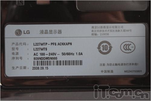 除此之外,我们可以肯定的是,L227WTP依然使用LG Display(LPL:LG Philips LCD,飞利浦退出后改名LG Display)面板。至于LG其他的22寸是否使用LG原厂面板,我们就不敢确定了。