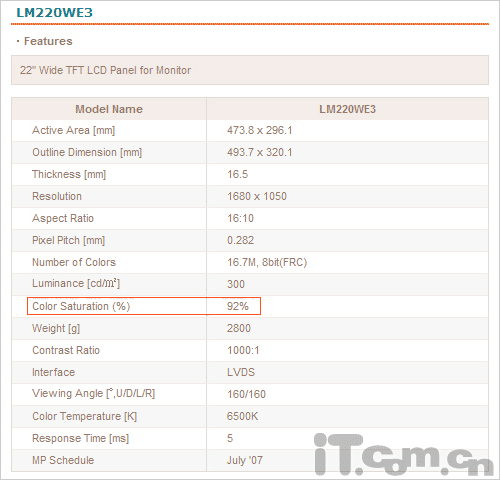使用LG Display唯一一款广色域22寸TN面板LM220WE3(LM220WE1为72% NTSC)