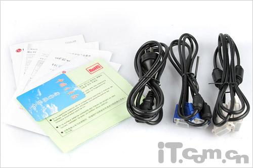 附件带有VGA、DVI、电源等各种线缆,说明文档、质保卡、清洁抹布等也一应俱全。