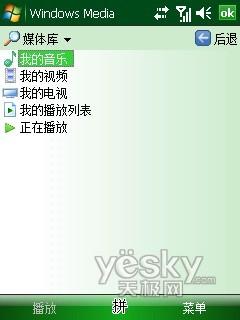 i-mate 8501内置了WindowsMediaPlayer多媒体音乐播放器,支持MP3、WMA、WAV、AAC等音频格式播放以及WMV、MPEG4、3GP(H.263)等视频格式播放。