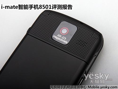 i-mate 8501搭载了一枚200万像素摄像头,支持最大1600×1200分辨率照片拍摄,但不支持AF自动对焦也不支持微距拍摄模式,就连自拍镜和闪光灯也被“和谐”掉了,使得该机的拍照能力大大削弱了。