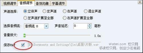 在工作中,我们可能需要对音频进行片断截取。然而,如果只是偶尔操作,显然没必要去下载那些体积庞大的专业处理软件。其实,有了快播之后,您只要将待处理音频,拖入到播放列表中进行播放。然后,等到目标位置,再用鼠标右击播放窗口,执行“音频调节”命令。就可以通过“音频调节”标签下的“保存WAV”复选框,实现歌曲的快速截取了。而在这个过程中,快播会自动从勾选复选框开始,到取消复选框结束,自动截取音频,操作上十分方便,如图3所示。