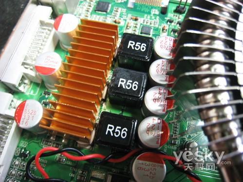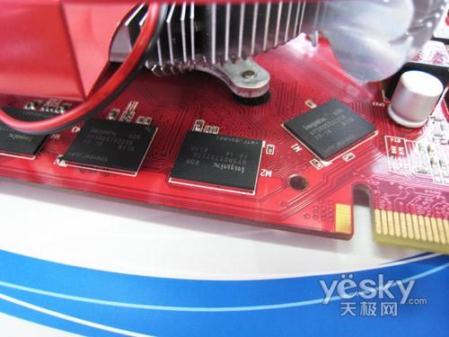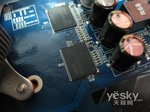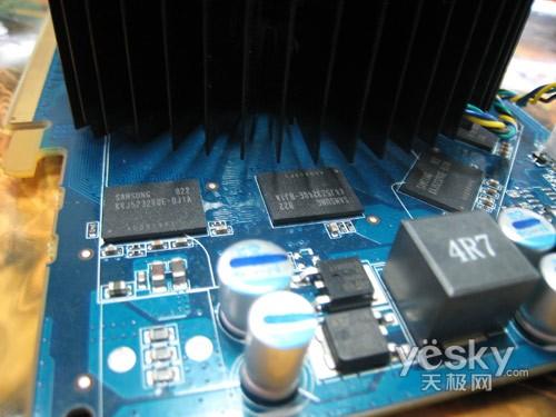 整体用料做工方面,产品全板采用了全固态电容和全封闭电感,用料还算不错。并且采用了Hynix的1.4ns显存颗粒,显存规格为256BIT/256MB,对性能提升还是比较有帮助。