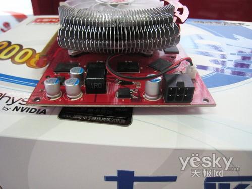 供电部分,翔升 权杖9600GT终结版 512M(升级版)采用分离式供电设计,3相核心供电、1相显存独立供电,显卡提供了一个6Pin的电源外接口。用料上采用高品质固态电容、R68铁素体封闭式电感、以及有序排列的低阻抗MOS管,豪华用料提供更稳定供电保障,保证产品品质,更安全、更耐久、更稳定。