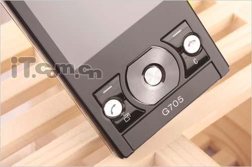 为了适应潮流,索尼爱立信为G705配备了一块2.4英寸QVGA分辨率26万色的TFT显示屏,并在屏幕左上角装配了光线感应器,科学合理地对屏幕亮度进行调节。由于屏幕面积达到了主流的2.4英寸,因此G705实际的显示效果并不算出色,基本维持在G700的水平上。