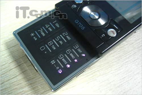拥有黑色和金色两种机身颜色,不同色调的索尼爱立信G705带来不同风格的视觉效果,黑色酷帅有型而金色则典雅风尚。同所有滑盖手机一样,G705拥有功能键盘和数字键盘两个键盘,“三个圈”风格依旧被G705沿用,只是五维导航键更加宽大舒适,边角线条化的处理与机身造型相当吻合。