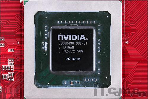 G92核心经过了一年多的洗礼,现在已经升级成55nm制程工艺,这次测试的9800GT则使用了全新55nm工艺制造,核心编号为G92-283-B1。