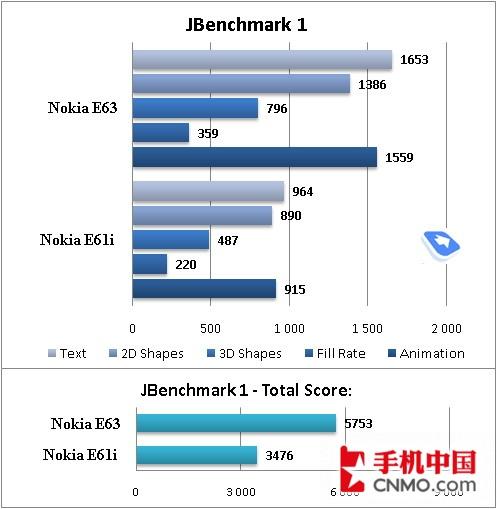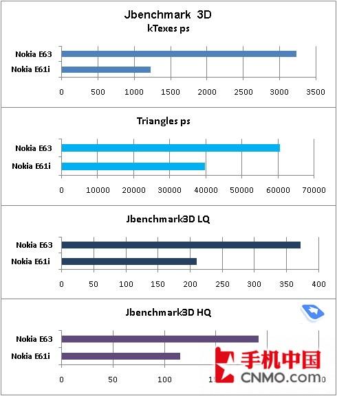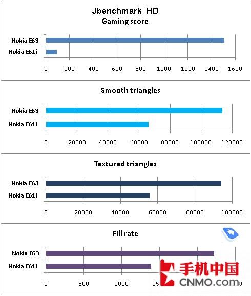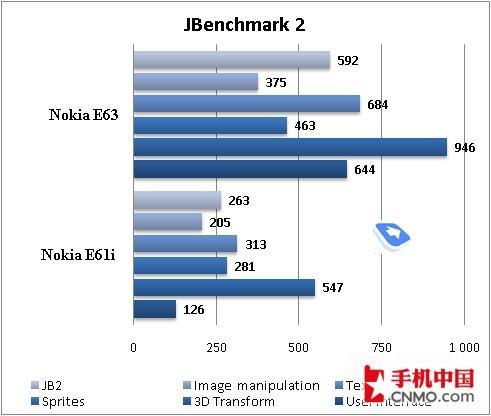诺基亚E63(左侧)与诺基亚E61i(右侧)性能对比