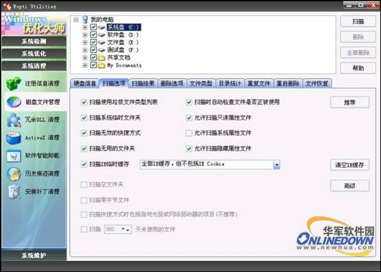 Windows优化大师系统清理界面