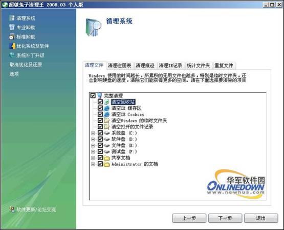 电脑垃圾清理专家系统文件清理界面