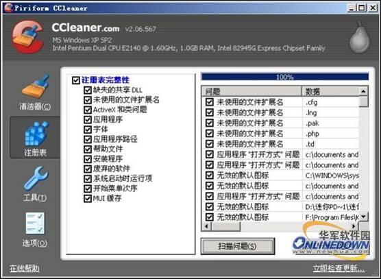 CCleaner注册表清理界面