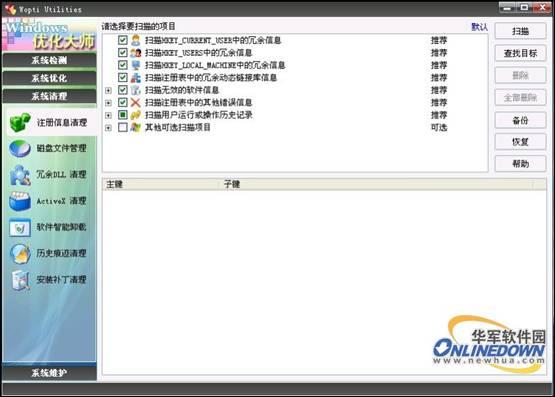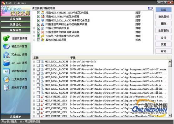 Windows优化大师注册表清理界面