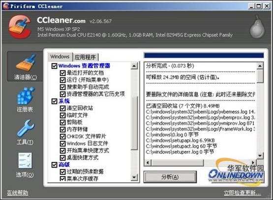 1.CCleaner可清理的Windows系统垃圾包括:最近打开的文档记录,运行历史记录,回收站,粘贴板记录,内存转储文件等系统无用文件,分析完毕,CCleaner会在右边列表中详细显示各个垃圾文件的位置和大小以及搜索这些垃圾所花费的时间和清理后可释放的空间大小(估计值);