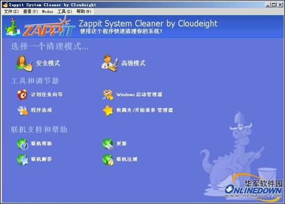 通过上图我们可以看到Zappit System Cleaner的界面比较华美,而且主要的模块都有悬停提示,显得很人性化。另外,Zappit System Cleaner为不同的人群定制了不同的清理模式,其中的安全模式适合初学者或者对电脑不是很了解的人士选用,而高级模式适合有一定的电脑基础的人士选用。