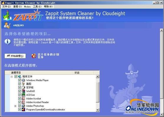 3. Zappit System Cleaner可清理的应用程序,包括:Window MediaPlayer、WinRAR、ACDSee、Adobe Acrobat、Adobe Reader、Adobe Photoshop、Google Toolbar、写字板等11种;