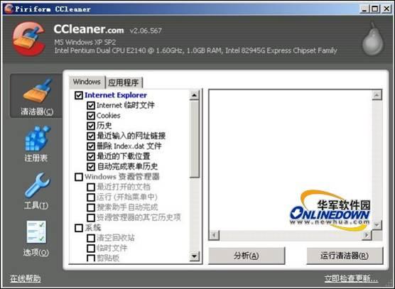 1. CCleaner支持的浏览器包括:IE、Firefox/Mozilla和Opera,其中能够清理的IE垃圾包括:通过IE浏览器上网产生的临时文件、Cookies、最近输入的网址记录、自动完成的表单历史等文件;