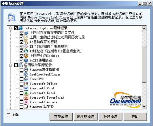 很多应用软件在使用过程中会生成大量的历史记录,比如媒体播放器的播放历史、Office办公软件的使用历史等等,这些无用文件记录了用户的操作历史,很容易泄露个人隐私,因此应用软件的使用痕迹清理对于保护隐私来说显得很重要。