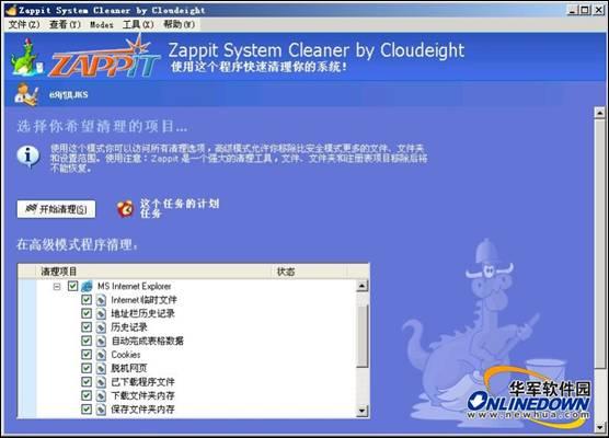 Zappit System Cleaner Internet清理界面
