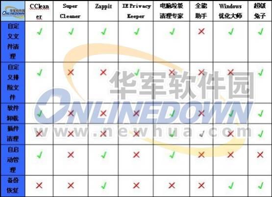 软件的个性化是一款软件区别于其他同类软件以满足不同用户需求的特点,小编发现参评的八款软件在垃圾清理方面都提供了一些个性化的清理功能,现列表如下: