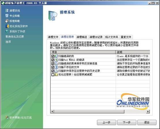 6. 超级兔子清理王可以清理的注册表垃圾包括错误的类、Vxd和Dll错误、错误的菜单排序和反安装信息、不存在的文件、软件保存在注册表中的历史记录等;