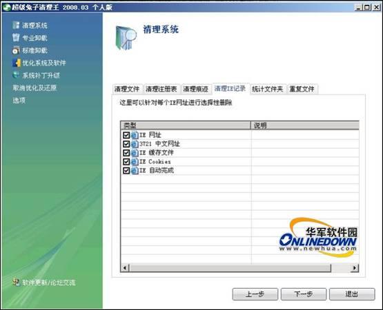 Windows优化大师Internet清理界面