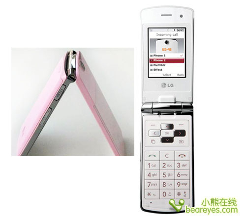 LG“冰淇淋”手机KF350最近将在中国内地上市,是专门为女生设计的“甜美无敌时尚手机”。KF350拥有粉色和白色两种款式,带给人“草莓”和“香草”冰淇淋的感觉。该手机采用经典的折叠造型,烤漆材质的机身做工细腻,拿在手里就像一个粉嫩可口的 “ice cream”,让人好想咬一口。手机上独具特色的LED灯光符号在来电时一闪一闪,仿佛少女的呼吸。这些可爱的特点让冰淇淋手机一下子成为了甜美女生的时尚首选。