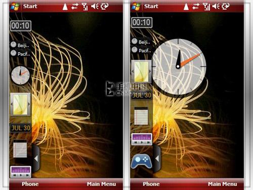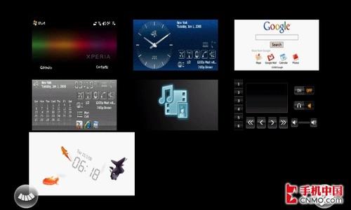 除了“Xperia Panel”外X1其实就是一款普通的WM专业版手机,而“Xperia Panel”是索尼爱立信X1当中的桌面3D动态选单,X1手机还在正面左下角特别设置了一个该功能的快捷键,只要轻轻一按就能够看到一页一页书一样的3D效果。它可以实现扇形排列、左右旋转、纵向显示等,都可以通过手指的滑动完成操作,使用这一界面实现了系统桌面插件的快速切换。