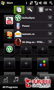 虽然是最强大的多任务处理系统,但是程序管理依然是Windows mobile众多操作短板中最短的一块,系统所有自带软件均无“退出”概念,后台程序管理方式也一塌糊涂。不过所幸目前多数手机厂商都认识到了这一点,HD内置了HTC经典的任务管理器以及大号开始菜单,Touchflo3D中更是有专门的软件管理界面,在程序管理上可以勉强及格。