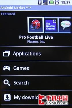 G1手是第一款提供连结Android Market的手机,通过Android Market(在线软件店)使用者可以搜寻并下载到适合自己个性化的软件和游戏,操作非常简单,并且不需要通过手机与电脑连接,只要连接至Android Market,软件就会列出应用程序和游戏等软件。虽然如此,G1上市时间还不长,特别是适合国人使用的第三方软件还不多。