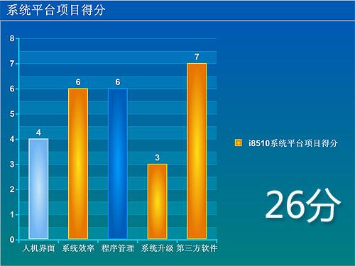 随着PALM逐渐淡出,Symbian S60智能平台已经成为了效率最高的智能操作系统,i8510的FP2版本虽然在效率上比之前并没有提升,但依然可以获得6分的高分。