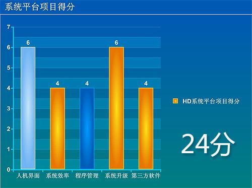 本部分分为“人机界面”“系统效率”“程序管理”“系统升级”和“第三方软件”五个小项,每项满分是7分。虽然操作系统对于机型得分的影响非常大,但也并不是说同系统机型便无差距,一些对系统的细节修饰往往会获得额外加分。