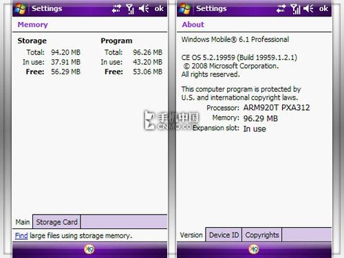 | 操作系统 | Windows Mobile 6.1操作系统,Professional平台 |
