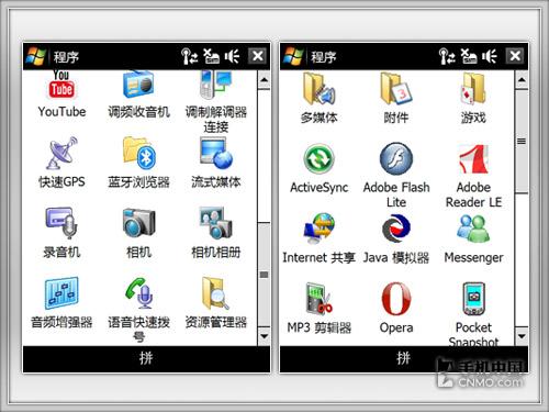 在中文应用软件上,Symbian S60是绝对的霸主,但如果将视野扩展开,将范围扩大到全球,那么Windows mobile的软件资源绝对有和Symbian抗衡甚至超越的实力。虽然VGA分辨率的软件并没有QVGA那么海量,但应付使用的上百款常用软件还是很抢眼的。