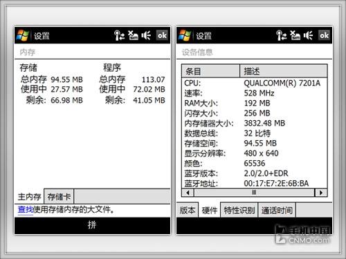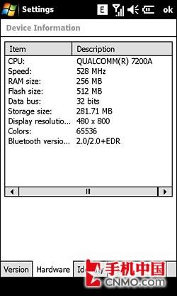 | 硬件系统 | CPU:Qualcomm MSM7201 528MHz |