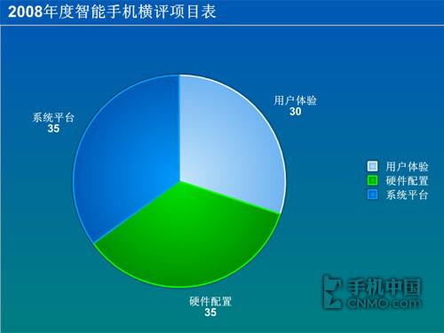 本次评测分为用户体验(分值30)、硬件配置(分值35)、系统平台(分值35)、三部分,我们会根据内容权重我们给出了一定的分值,总分为100分,最后会据各项得分之和得出年度最佳智能手机及编辑推荐手机。