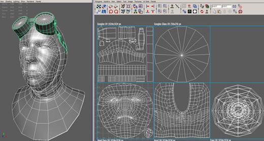 我在头部加了一个简单的柱状UV,然后用Unfold命令来修正它。稍后,我会用Zbrush,Image Plane, Projection Master来给它添加材质。