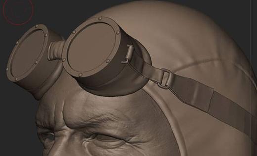最后是风镜部分。金属部件在我把它们从Maya里导出的时候就已经做好了。现在我所关心的是皮革部分。重要的一点,要记住皮革带是紧紧地绑在头部,要让它看起来是这个样子的。