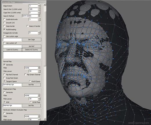 确保UV正确布局的情况下,回到Topogun开始进行普通贴图,环境吸收贴图等工作。下一个图片你将看到我用的设置。