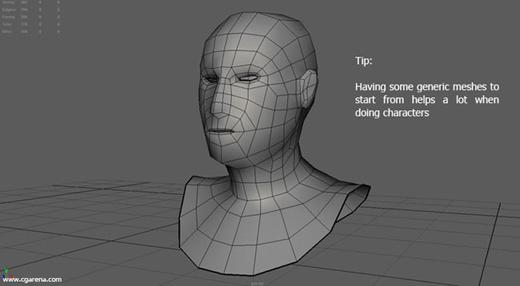 我通常会很早使用一个普通的头部形状。现在我并不关注细节和解剖特点,我所关注的是头部的比例。