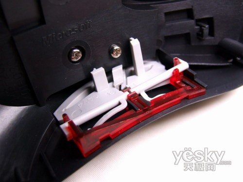 与传统鼠标不同,IE3.0的侧键并没有采用按键与微动直接接触的方式,而采用了极为复杂的结构,因此,它的侧键与微动的接触过程可以用一波三折来形容,这就导致两个侧键的按键感觉极其糟糕,即使是全新的IE3.0它的侧键按上去也感觉软绵绵的,一点也没有欧姆龙微动那种应有的清脆感,而且松动情况极其普遍,许多全新的侧键也像无骨头一样松松垮垮。另一方面,IE3.0的侧键位置也不十分合理,初接触很容易误按,需要适应。可以说这个侧键也是整个鼠标上最失败的设计之一。