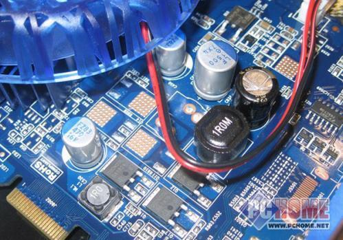 显卡配备了三相供电模块,其中核心为两相供电,显存为一相供电。用料上该显卡采用了日本化工高品质电容,配上全封闭陶瓷电感,加上双6pin供电接口,保证了该显卡长期稳定运行。