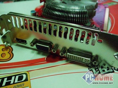 显卡的接口部分设计方面,盈通R4650-256GD3龙翼版也比较齐备。VGA+DVI+HDMI接口的设计方案几乎可以满足用户的所有需求。并且Radeon HD 4650本身内置7.1声道声卡,配合HDMI,可以做到音频视频一线输出,为用户接驳大屏幕显示设备提供了方面。